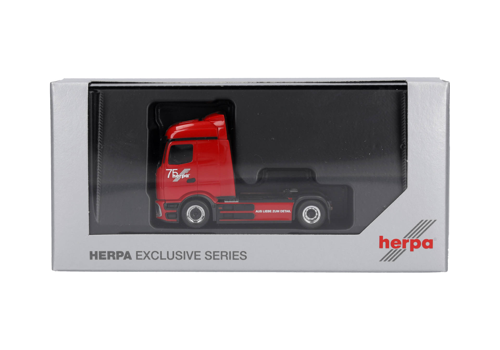 Passend zum 75-jährigen Jubiläum von Herpa gibt es drei Sondermodelle mit dem Jubiläumslogo: Die zwei modernen Zugmaschinen Mercedes-Benz eActros 600 ProCabin Streamspace und MAN eTGX GX sowie den klassischen Mini. Alle erscheinen in sehr kleiner Auflage und sind exklusiv nur hier im Herpa-Onlineshop erhältlich.