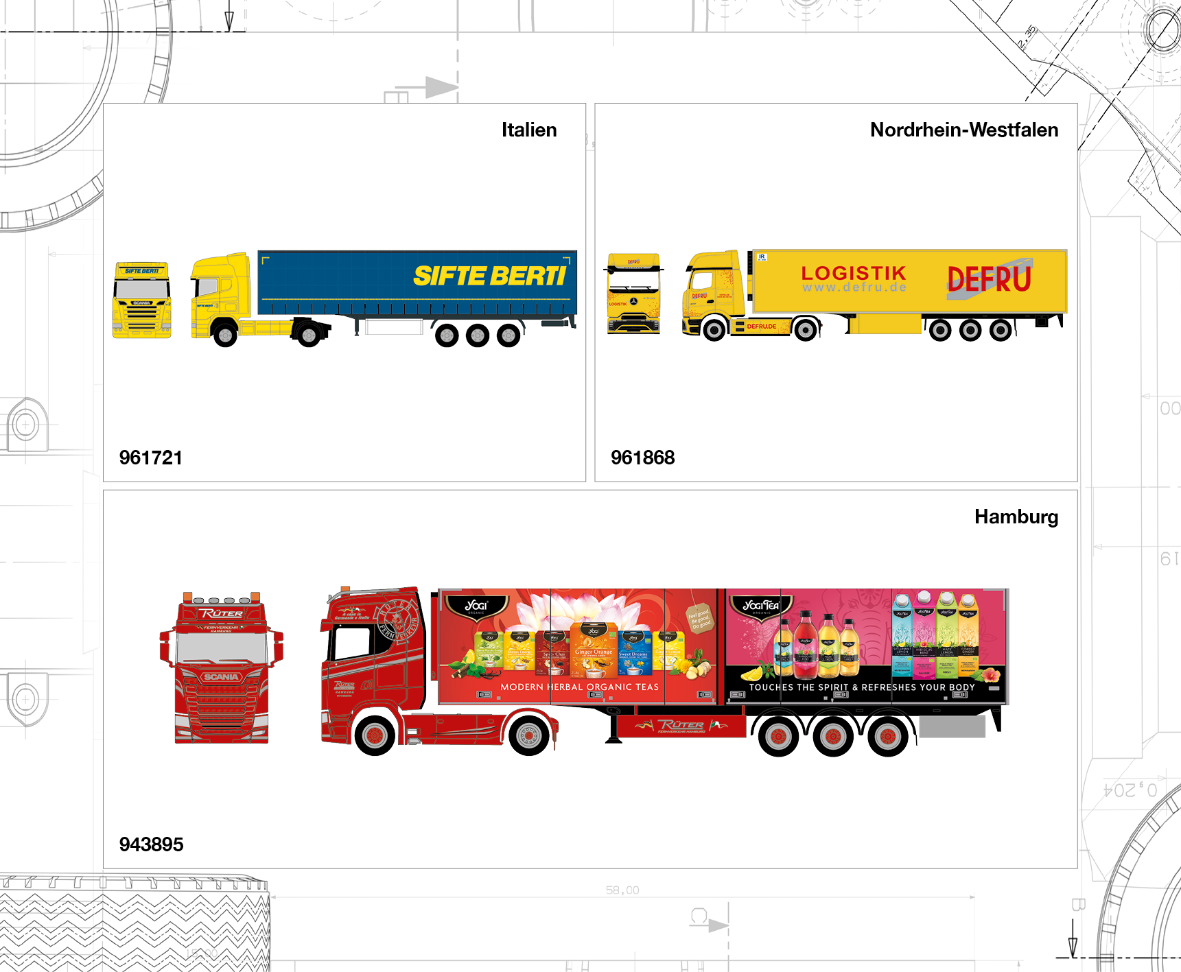 943895 Scania CS 20 high roof refrigerated box semitrailer truck "Rüter/Yogi, 1/87