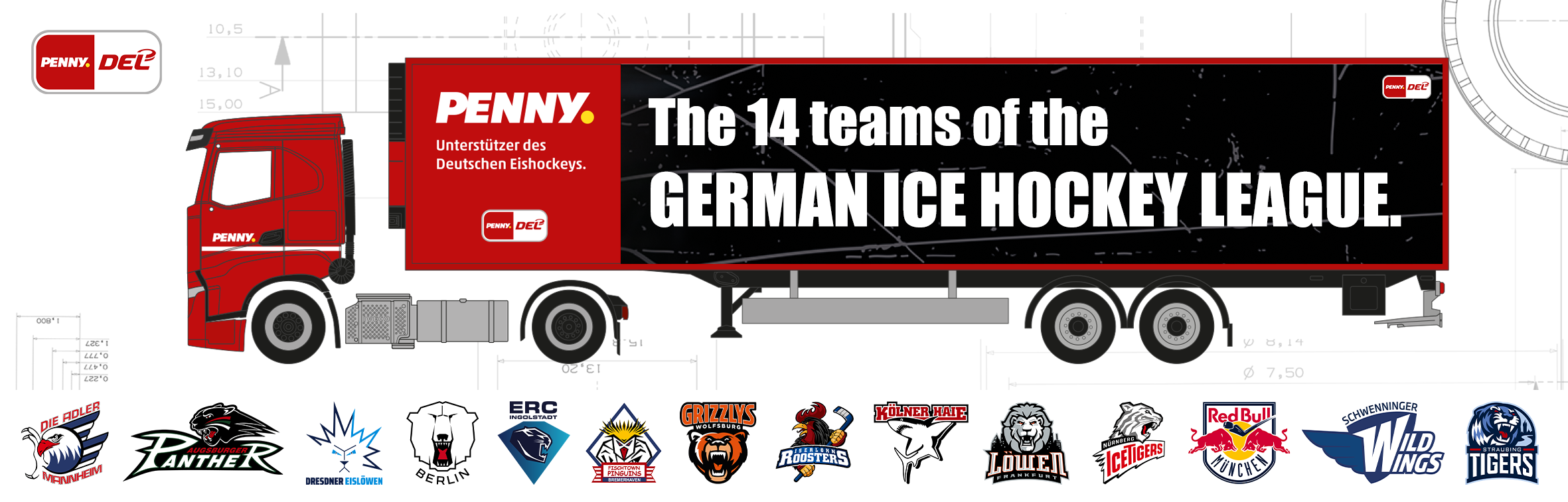 The PENNY DEL is the highest league in German ice hockey. For the 2025/26 season, title partner PENNY had the idea of giving all PENNY DEL clubs the opportunity to design their own PENNY truck. The result are 14 beautiful designs, which we are turning into models in collaboration with the league and which will soon be seen on the roads. All models will come in special packaging and will be released in a unique, limited edition.