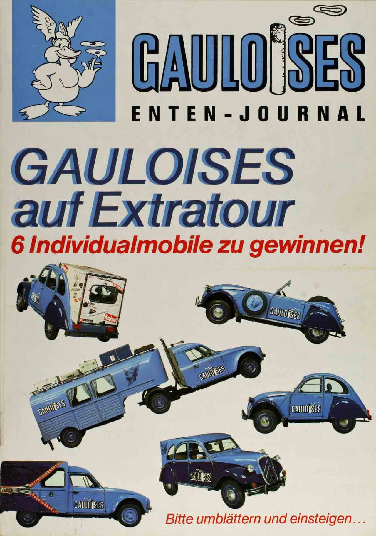 Legendär sind die Gauloises-Enten. Die Zigarettenmarke lässt diverse Einzelstücke verwirklichen, die von fleißigen Rauchern gewonnen werden konnten. Kleiner Einblick in das breite Spektrum der Gauloises-Enten: lang, kurz, schwimmfähig, im Retro-Look, als Cabrio – nichts ist unmöglich und jede ist ein Einzelstück. Werbung für die Gauloises-Enten. Jedes Exemplar war Handarbeit, von einem Hamburger Karosseriebauer im Auftrag des deutschen Gauloises-Importeurs gefertigt.